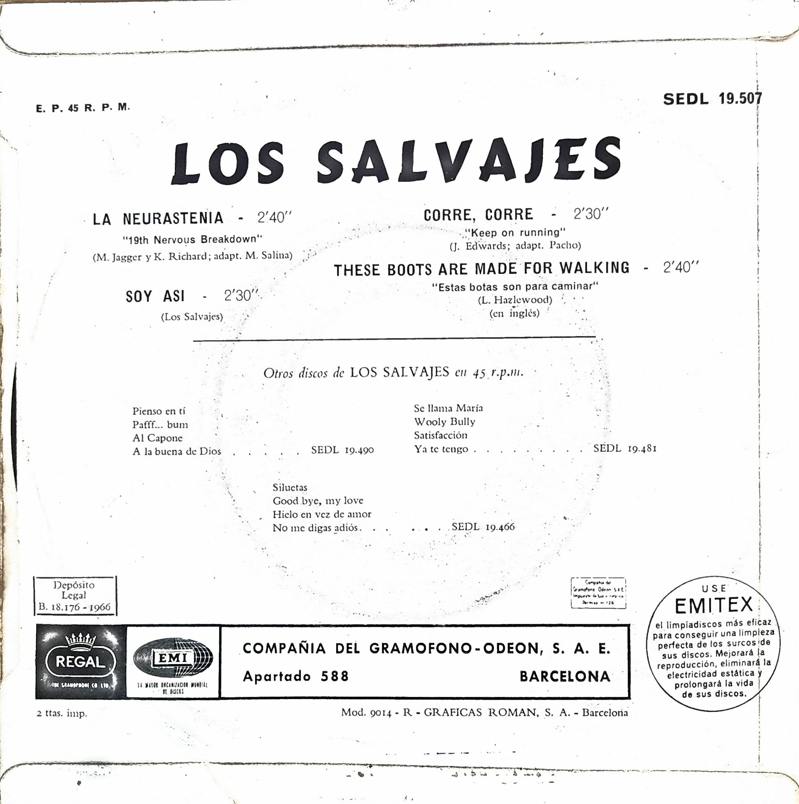 Presentamos este vinilo 7″ EP de Los Salvajes, titulado «La Neurastenia», editado en España por el sello Regal (catálogo SEDL–19.507) en 1966.